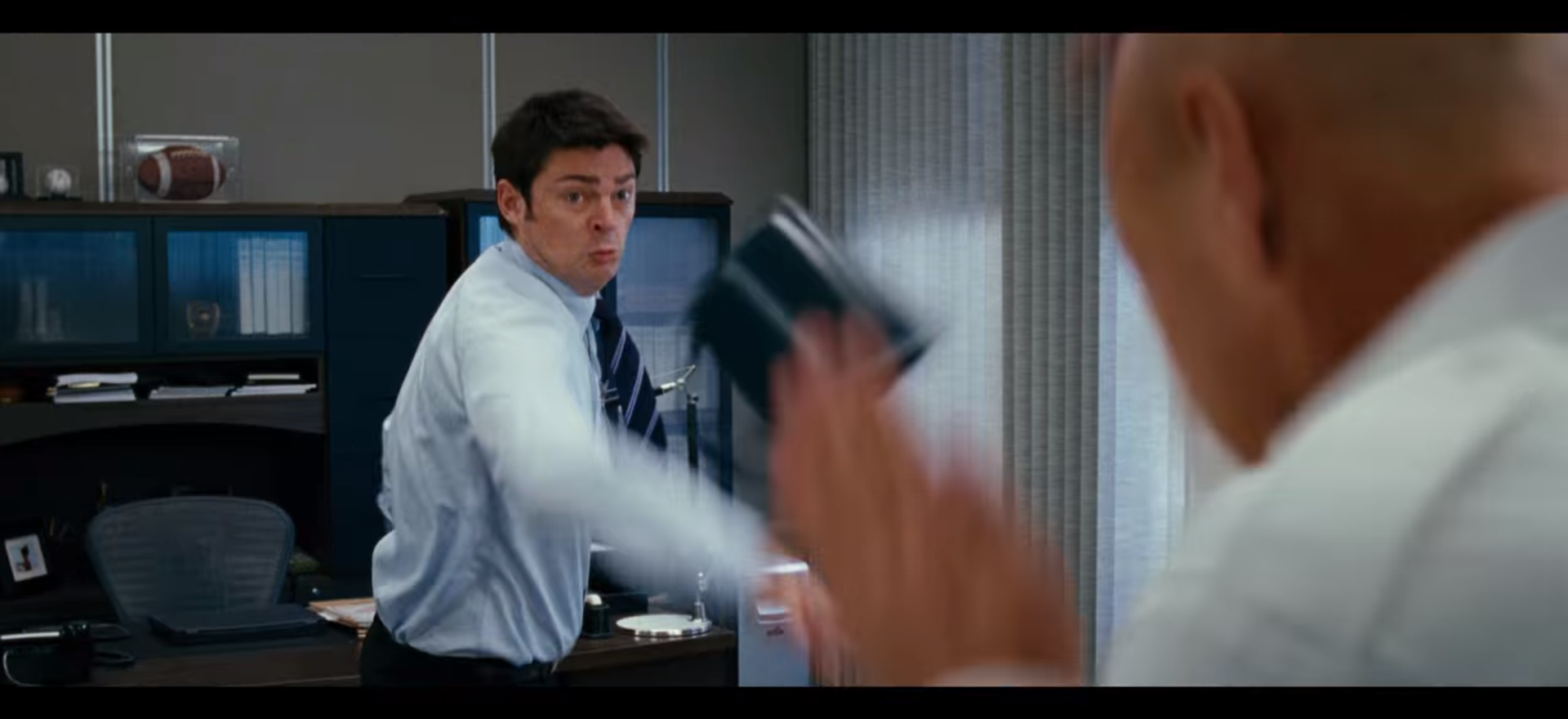 14. 부엌에서의 총격전에서 부통령의 경호 팀을 깔끔하게 제압한 빅토리아와 마빈. 그 후 마빈 역의 존 말코비치는 "예전에는 경호팀들이 좀 더 터프했던 것 같은데 말이야"라고 비아냥거리는데, 이는 1993년작 영화 <사선에서>에서 그가 대통령 경호팀을 상대로 대통령을 저격하려고 시도하다가 결국 패배했던 것을 상기시킨다.