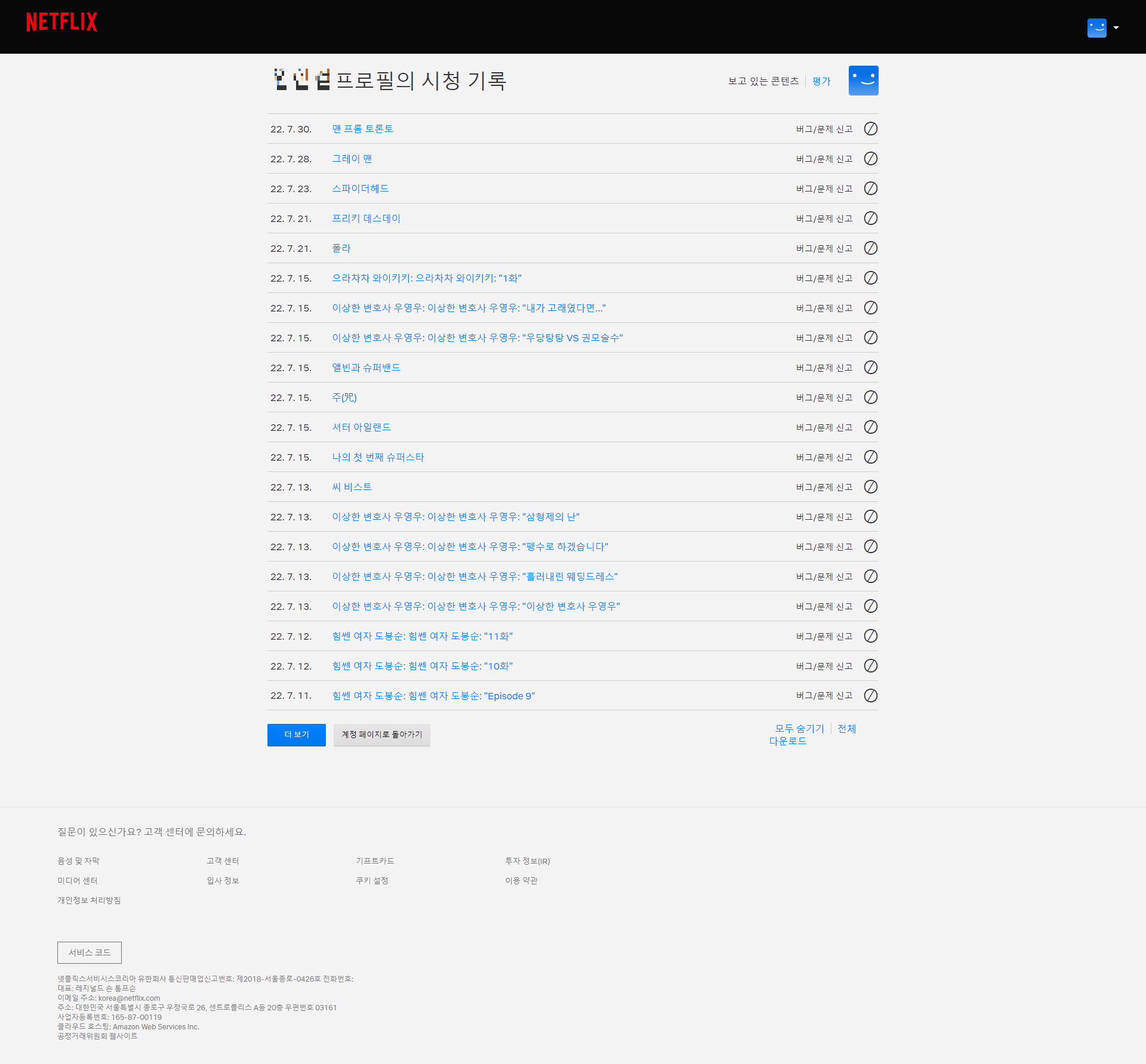 넷플릭스를 보다 보면 자연스럽게 시청기록이 생긴다.