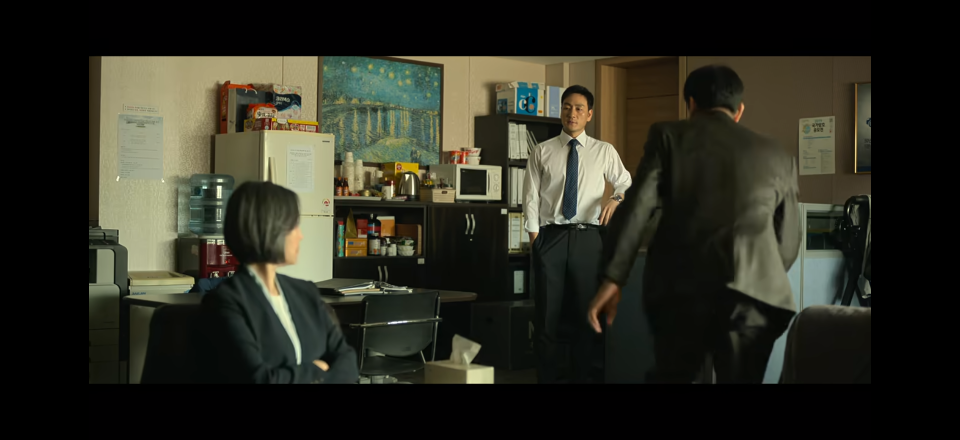 그리고 그 곳에 나타난 지부장은, 다름 아닌 초반에 배신자로 보이는 남자를 쏴 죽인 바로 그 남자 지강인(설경구 분)이었다.