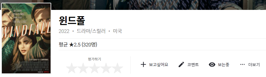 (참고로, 영화의 제목인 윈드폴Windfall은 뜻밖의 횡재를 의미한다)