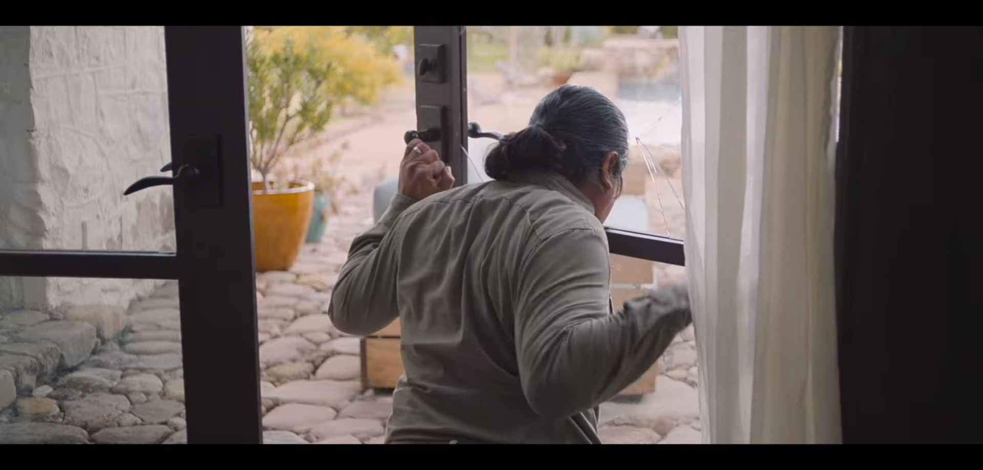 예기치 않게 정원사가 나타난다. 처음에 정원사는 침입자의 정체를 알지 못하지만, 남편은 쪽지로 '911에 신고하라'고 정원사에게 메모를 건네고, 정원사가 수상한 낌새를 눈치채고 도망가려는 순간 침입자는 그에게 총을 겨눠 그조차도 인질로 삼는다.