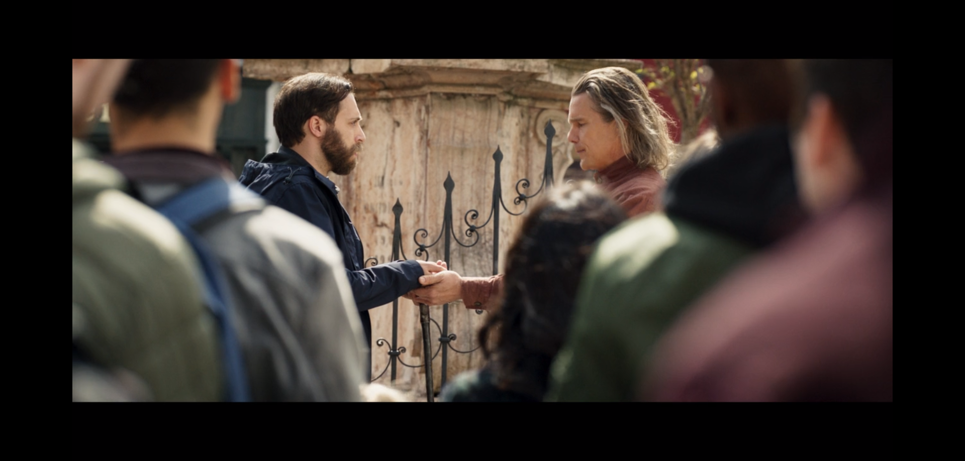 그렇게 간신히 근처의 마을로 도망친 그는, 웬 사이비 교주 같은 남자가 마치 점을 보듯 하나씩 앞으로 나온 사람들의 손을 잡고는 그들이 선한지 악한지를 판별해 주고 있는 것을 발견한다.