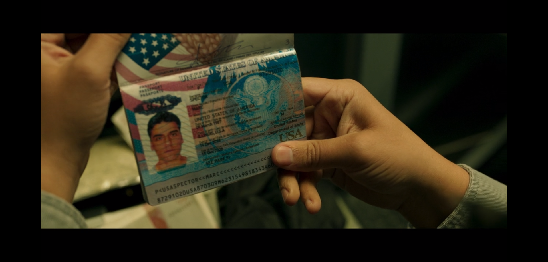 거기에 자신의 사진과 함께 '마크 스펙터'라고 써 있는 웬 미국여권과, 권총 및 각종 현금이 잔뜩 든 수상한 가방을 발견한다.