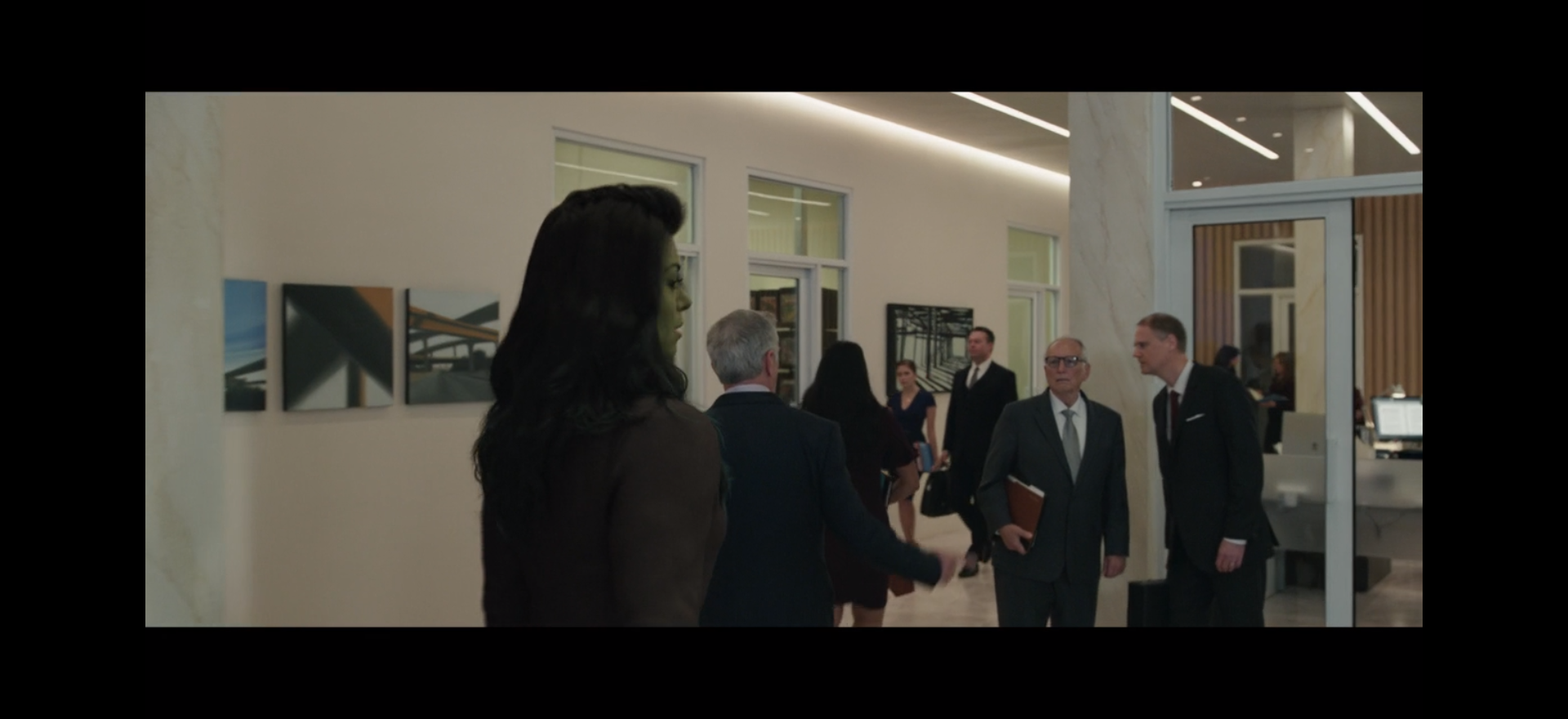 쉬헐크는 총 9화로 기획되어 있는 것으로 알려져 있는데, 기존 마블 드라마들이 <완다비전>을 제외하고 전부 6화에 50분 구성이었던 것과 비교해 확실히 이례적이다. 그래서인지 한 화 한 화의 볼륨이 작고 호흡이 빠른 편이다. 드라마라기보다는 시트콤의 호흡인데, 최근 마블 드라마가 계속해서 혹평을 받고 있기에 형식적인 변화를 시도해 본 게 아닐까 짐작해 본다. 분위기 자체도 미즈 마블이나 문나이트에 비해 훨씬 가볍고 경쾌한 편.