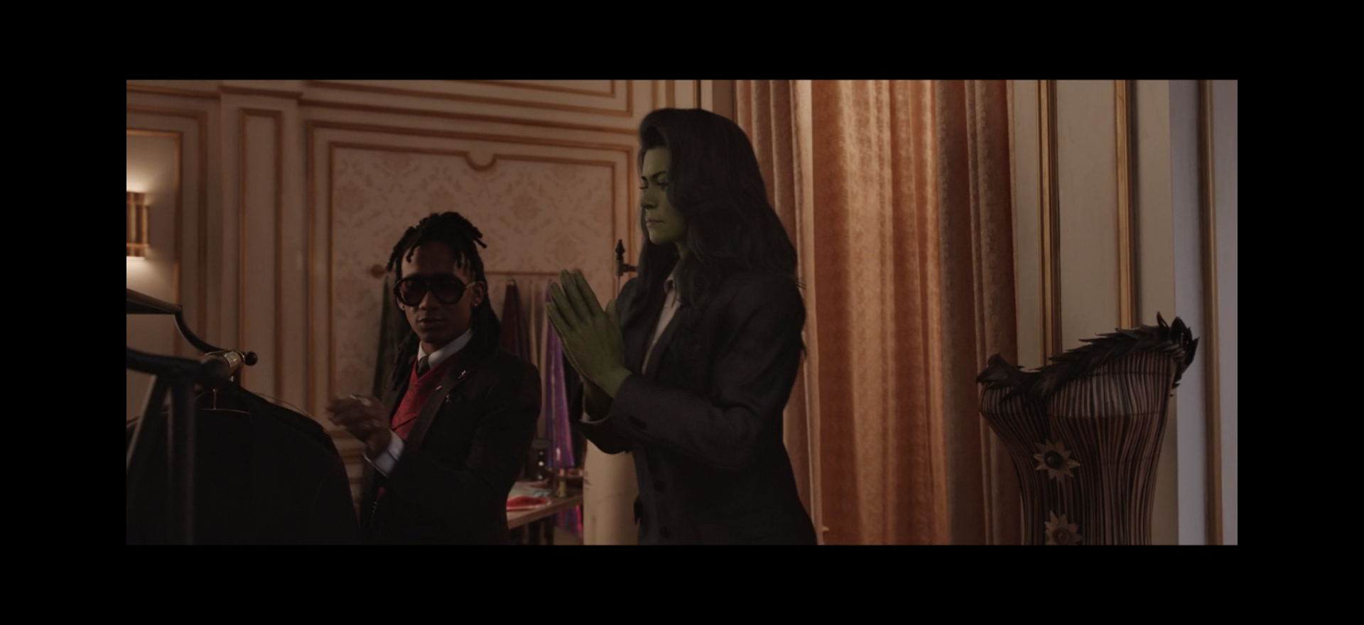 제니퍼의 로펌 대표는 제니퍼에게 쉬헐크가 슈퍼휴먼 전담부서의 얼굴마담인데, 그 쉬헐크가 소송에 걸려가지고야 어떻게 고객을 유치하겠냐며 타박한다.