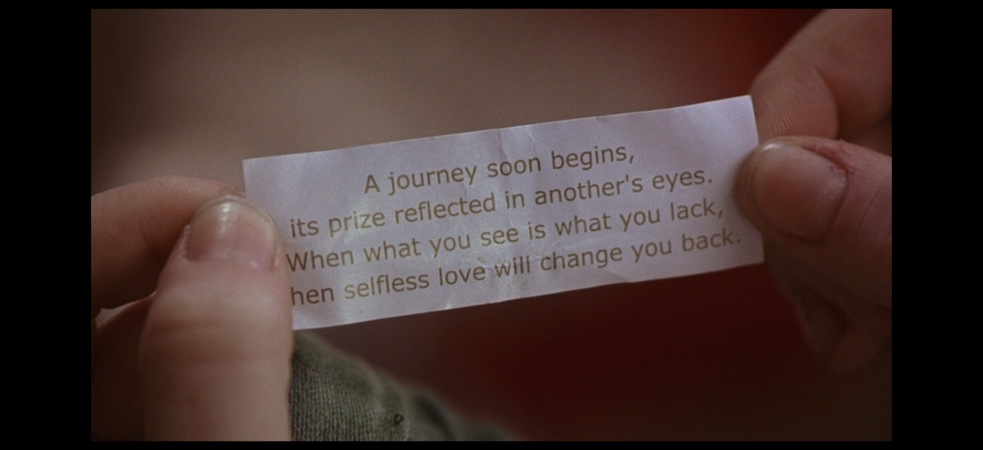하지만 종업원도 난처해하며 만약 뭔가 이상한 일이 벌어졌다면 그 포춘쿠키에서 나온 지시대로 해야 몸을 되찾을 수 있을 것 같다고만 말한다. 이에 어제 입은 옷을 뒤져서 쪽지를 찾아내자, 거기에는 다음과 같은 알쏭달쏭한 말만 적혀 있을 뿐이었다.