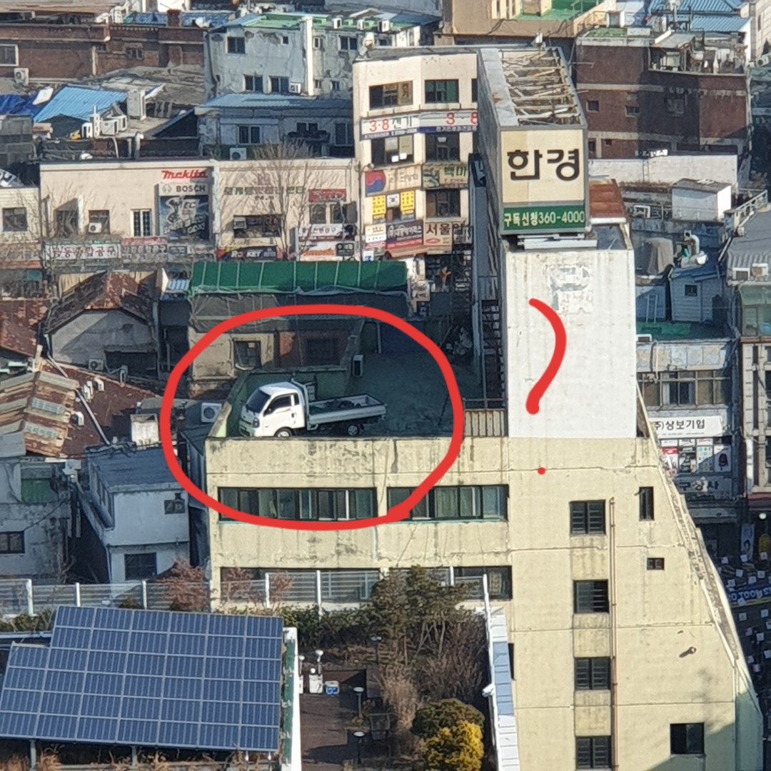 그런데 이건 상황을 아는 사람들의 눈에는 전혀 이상한 것이 아닐 수 있다. 예컨대 내가 볼 수 없는 건물의 사각에 차량을 올릴 수 있는 리프트가 있으며(사실 주차타워도 아닌 빌딩에 왜 그런 리프트가 있는지도 또다른 의문이긴 하지만, 그런 식으로 따지면 끝이 없으니 그냥 일단 넘어가도록 하자), 지상에는 주차공간이 부족하기 때문에 여유 있게 옥상에다 차를 올려 놓는다는 설명도 가능하다.