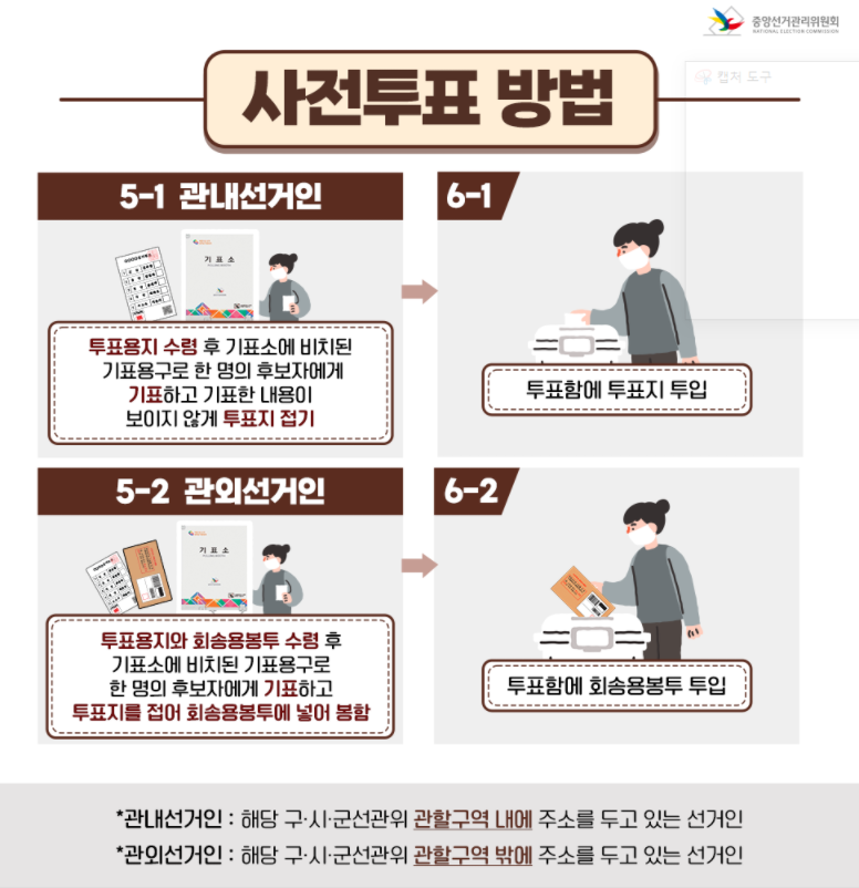 다만, 만일 자신의 거주지 관할 사전투표소가 아닌 타 지역(관외 사전투표소)을 방문했을 경우엔 약간 절차가 다르니 주의하도록 하자.