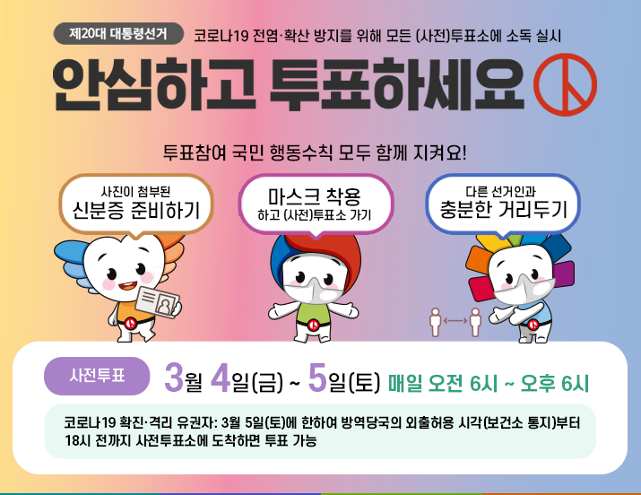 사전투표는 2022. 3. 4. 부터 3. 5. 까지 인근의 사전투표소를 방문하여 참여할 수 있다.