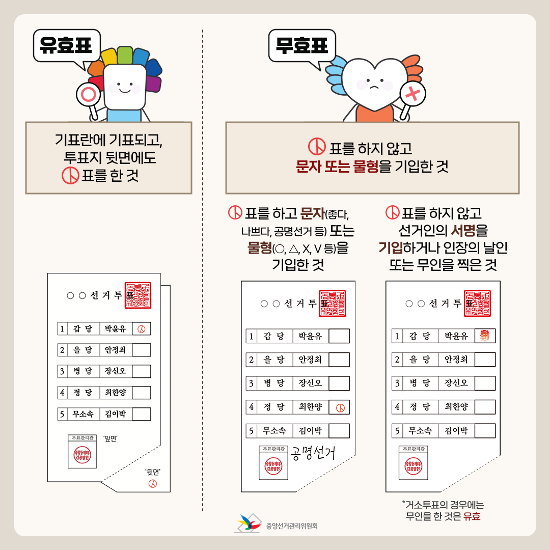 선관위는 다음과 같이 유효표와 무효표를 구분하고 있다.