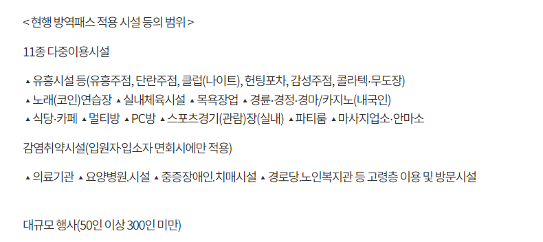 참고로, 현재 방역패스 적용대상시설은 다음과 같았다.