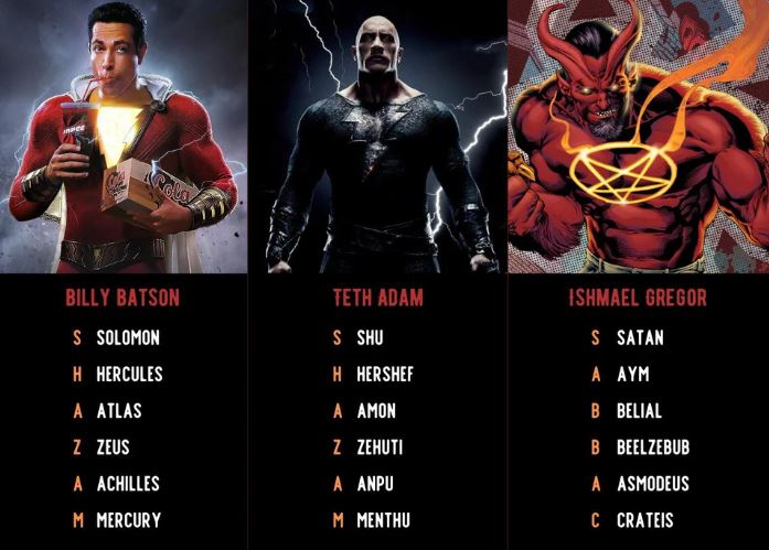 4. 샤잠과 블랙 아담은 모두 변신하기 위한 주문으로 "SHAZAM"을 사용하지만, 뜻은 각자 다르다: