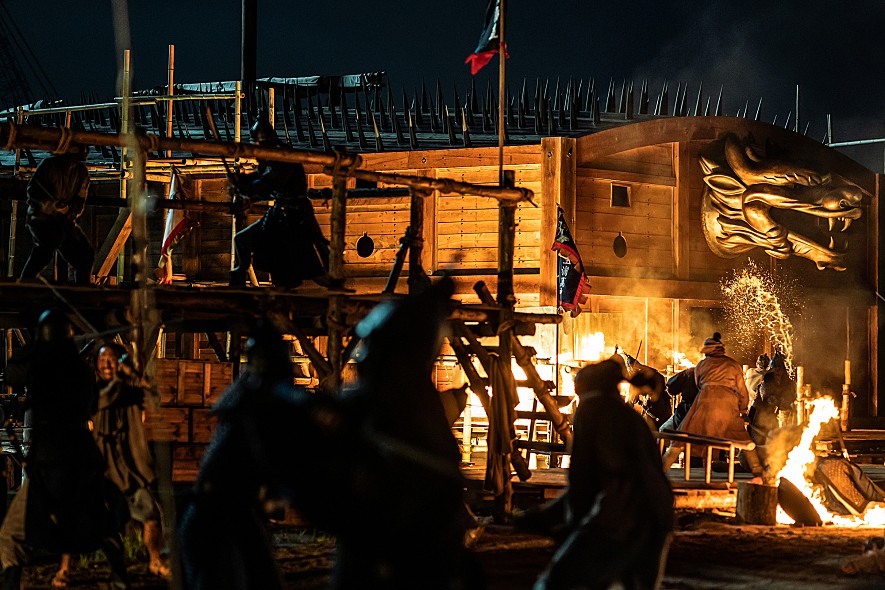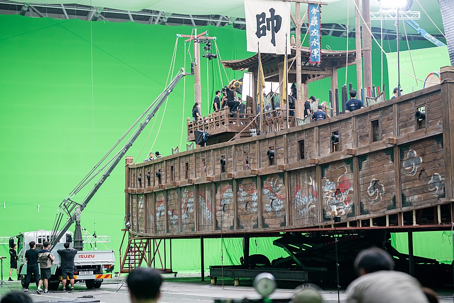2. 한산 해전은 (당연히)바다에서 촬영되지 않았고, 3,000평에 이르는 평창 스케이트장에 그린스크린을 설치해 CG로 구현한 장면이다. <명량> 당시에는 실제로 바다에 배를 띄워 놓고 촬영을 했었는데 당시 통제가 너무 어려웠던 관계로 이런 방식을 취하게 됐다고 한다.