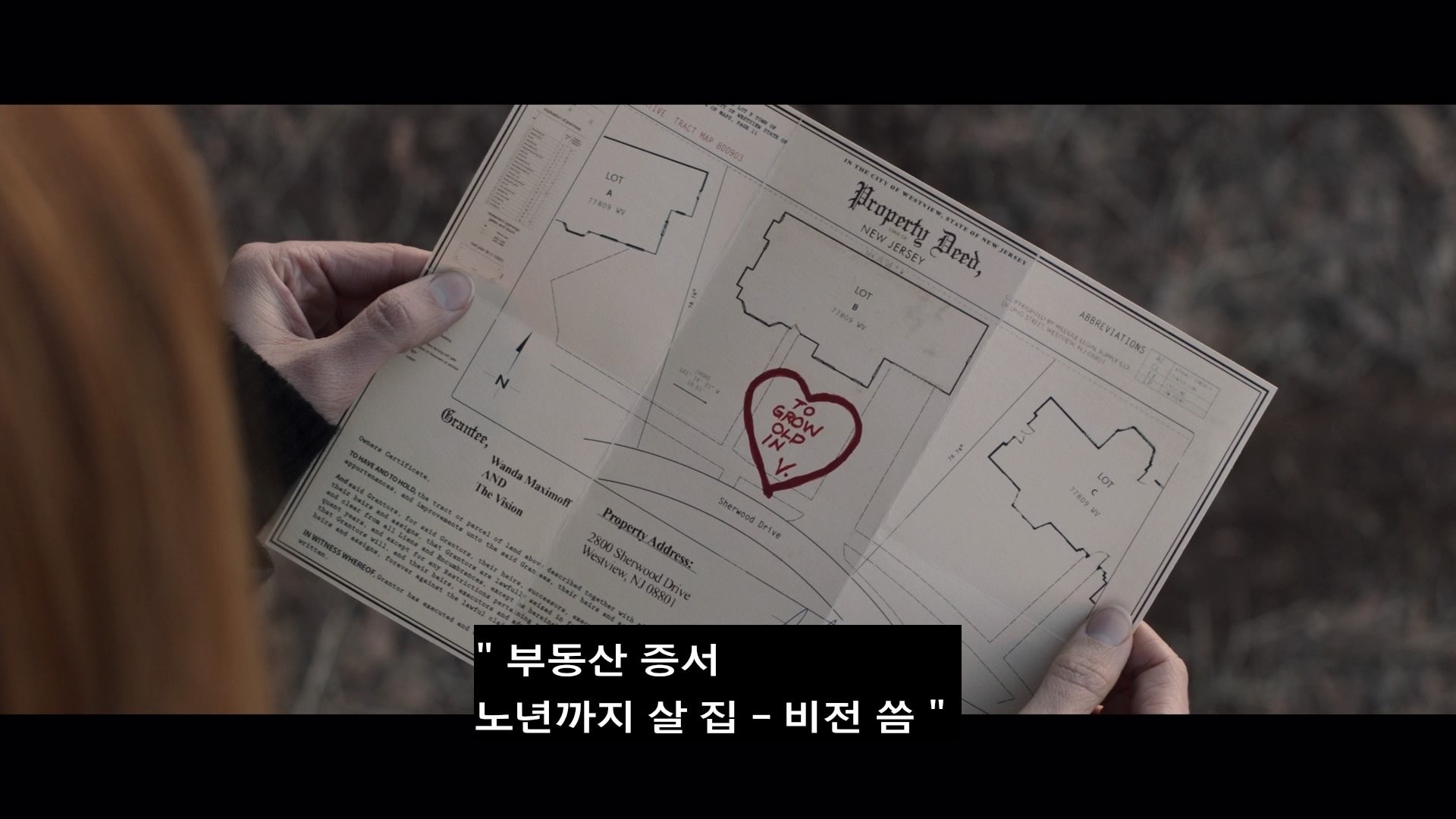 그렇다. 그 자리는 비전이 죽기 전 완다와 함께 살기 위해 미리 구매해 놓은 주택 부지였다. 그 자리에 잠시 멍하니 서 있던 완다는, 그녀와 비전이 함께 늙어갈 수 있었던 미래와, 함께 그릴 수 있었던 내일, 꾸릴 수 있었던 가족을 생각하며 오열한다.