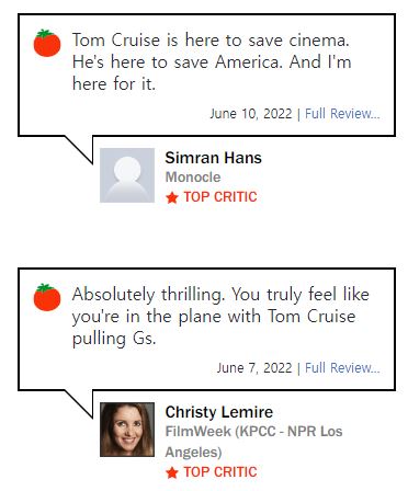 그렇게 관객들은 자연스럽게 현재의 매버릭의 모습과 젊었을 때 매버릭과 동료들의 모습을 연상하면서 (사실은 보지도 않은)원작의 향수에 젖을 수 있다. 원작을 본 관객이라면 두말할 필요도 없을 것이다.