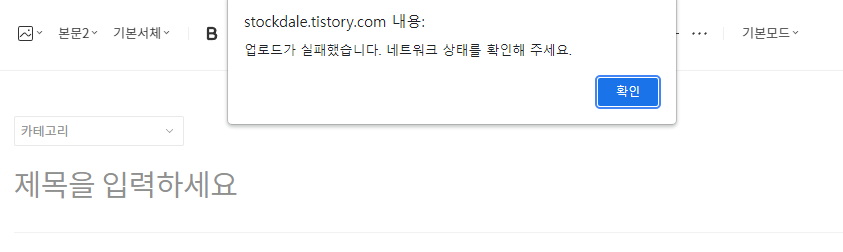 그런데 사진을 올릴 때 어떤 경우에 "업로드가 실패했습니다" 라는 메시지가 떴는데, 정작 미리보기 화면에서는 멀쩡하게 보이길래 뭐지 하다가 그냥 발행을 했다.