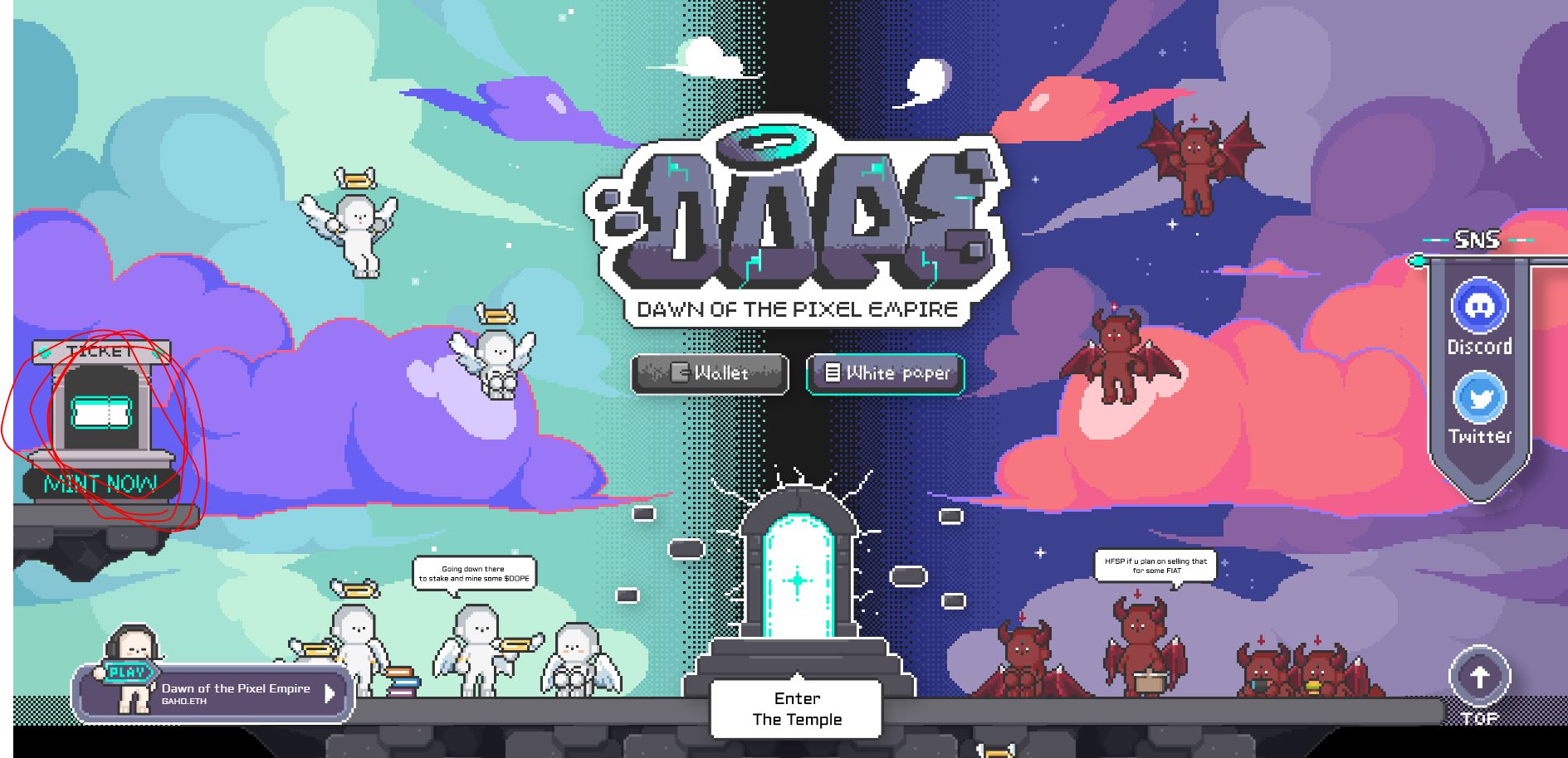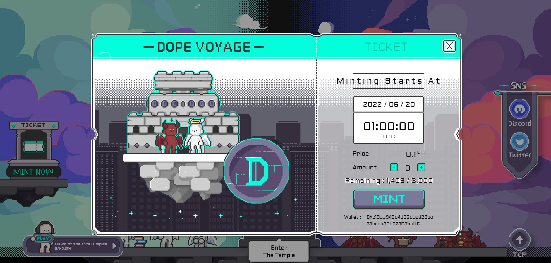 민팅이 완료되었으면 이제 문을 열고 DOPE(=Dawn Of Pixel Empire)의 세계에 들어서 보자.