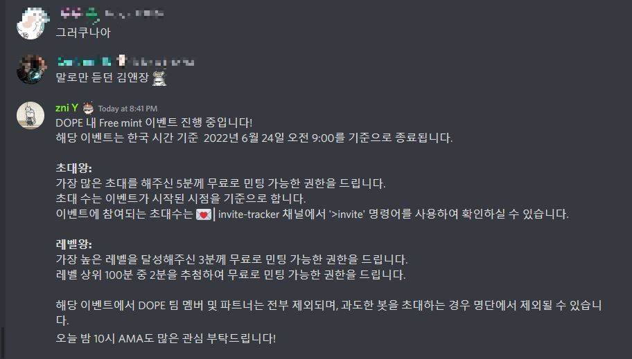 하지만 프로젝트 디스코드 채널(https://discord.gg/dopevoyage )을 돌아다니다 보면 심심찮게 연두색 이름들을 만날 수 있는데, 이들이 바로 프로젝트 멤버들이다.